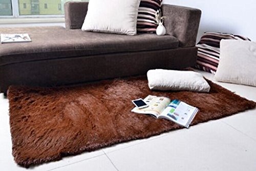 KLOUD City Super Soft Modern Shag Area Rugs Living Room Carpet Bedroom Rug for Children Play Solid Home Decorator Floor Rug and Carpets 4- Feet By 5- Feet Coffee