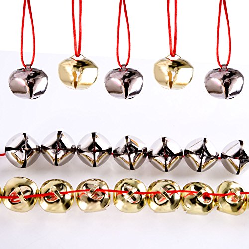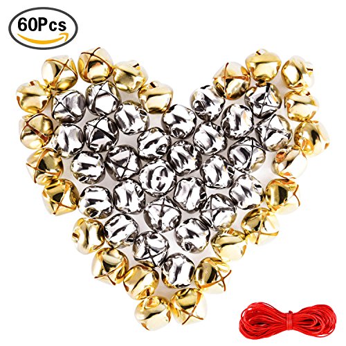Package: includes 60 piece of Christmas bells containing 30 pieces silver bells and 30 pieces gold bells as well as 1 roll of red cord