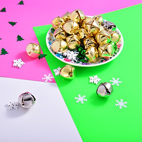 Sumind 1 Inch Jingle Bells Craft Bells Christmas for Festival Decoration DIY Craft with 20 m Red Cord, 60 Pieces, Gold and Silver