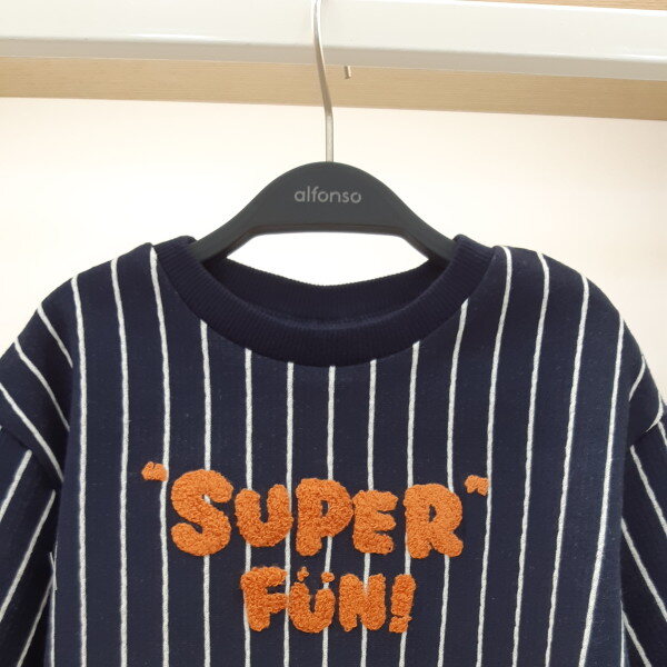 *도툼한 양면자갸드 소재의 티셔츠로 터치감과 보온성좋음*스트라이프패턴에 컬러배색자수가 포인트