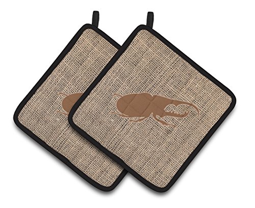 Caroline's Treasures Beetle Faux Burlap & Brown Pair of Pot Holders BB1056-BL-BN-PTHD, 7.5HX7.5W, Multicolor