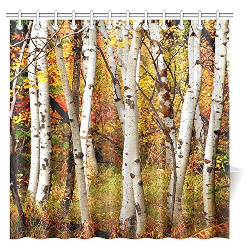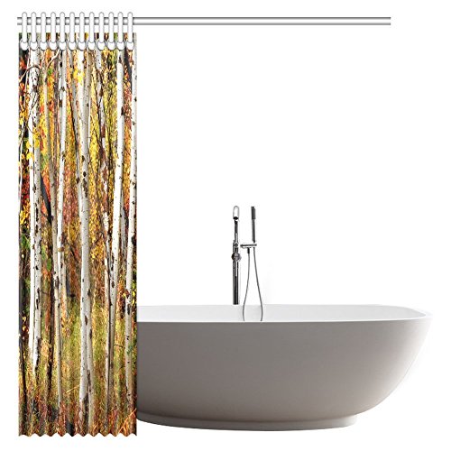 InterestPrint Fall Woodland Shower Curtain, White Fall Birch Trees with Autumn Leaves Growth Wilderness Ecology Calm View Fabric Bathroom Shower Curtain with Hooks, 72 X 72 Inches Extra Long