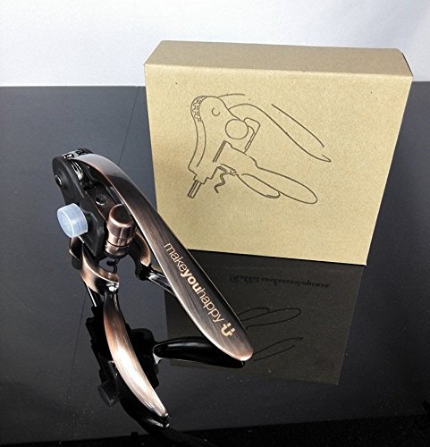 You get LIFETIME GUARANTEE for FREE (50$ value) and an astonishing lever corkscrew when buying this. Here's why you should: - It works better than the electric openers, it doesn't struggle with hard corks and it doesn't need to be charged before using it. -It looks great, being elegantly designed. -It is built to last: it's all made of sturdy metal (zinc alloy) - gears, levers, screw. - It's fun and easy to use. -It brings joy to you and your loved ones, when using it or when giving it as a functional and stylish gift. - Helps you spend more time with your beloved by opening the bottle fast, allowing you to return to the party (or on the couch - LOL) in no time. -It might just make your day. Try it! Not satisfied? Just send it back! You will receive your money back or a replacement, whatever you prefer. You will never have to buy another corkscrew again. The lever style corkscrews are popular due to their EASE TO USE and SLEEK DESIGN. The MAKE YOU HAPPY one takes this concept to a higher level by adding EXPERT CRAFTMANSHIP, a splendid VINTAGE LOOK and a luxurious BLACK GIFT BOX, thus becoming the ultimate wine accessory. This particular model (MYH-112) comes in a classic brown carton box. Other features: -Black soft rubber coating, insuring a smooth operation and a nice touch. -White plastic protective sleeve, to keep you from hurting yourself. -Teflon coated spiral worm, allowing you an easy, non-stick removal of the cork. Are you ready to take the opening of a wine bottle to the next level? Ok, then, just press ADD TO CART button. You'll love it! 0 |