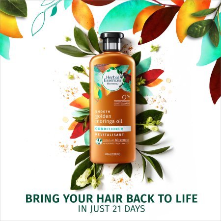 Studio : Herbal Essences Publisher : Herbal Essences Binding : Misc. Product Description Herbal Essences Golden Moringa Oil Shampoo and Conditioner with bio:renew help bring hair back to life in just 21 days. Theyre crafted with bio:renew, a signature blend of essential antioxidants, aloe and sea kelp, designed to help purify and protect against impurities., Your hair will truly get softer and more free-flowing because the bio:renew formula continues to work with each wash. Plus, youll notice your hair shining brighter and more nourished. From the first pop of the cap, our Golden Moringa Oil Conditioner will take you on a delicate multi-layered scent experience. Immerse yourself in the scent of juicy citrus followed by a bouquet of white florals and fresh coconut water. Simply apply conditioner to wet hair, massage into a creamy lather, get lost in the scent, and rinse. For even more stunning hair, use alongside Golden Moringa Oil Shampoo with bio:renew. 0