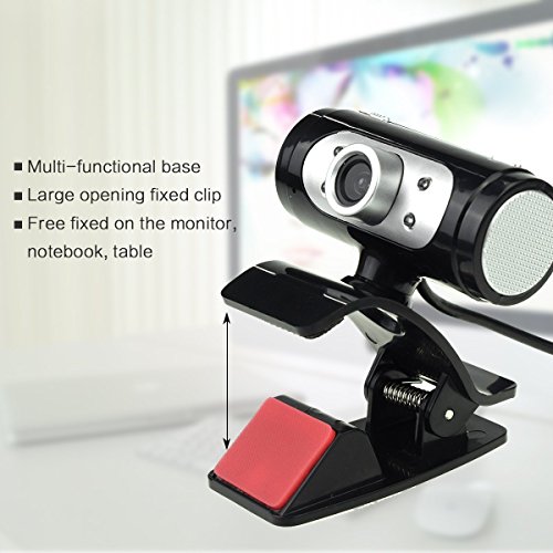 -. Feature : HD 5-layer glass 720P len. The lens can be manually focused to any distance and direction. / Image sensor is high-end CMOS high-definition chip, pixel upto 720P. The image window is upto 1080 * 720. / Camera can be rotated left & right 360 degrees, up & down 45 degrees, freely. / Base has a sP.R.Ing-type double clip, so this webcam can be easily placed on desktop or clip on your monitor or notebook. / With built-in digital microphone, your voice can be heard clearly in 10 meters.
