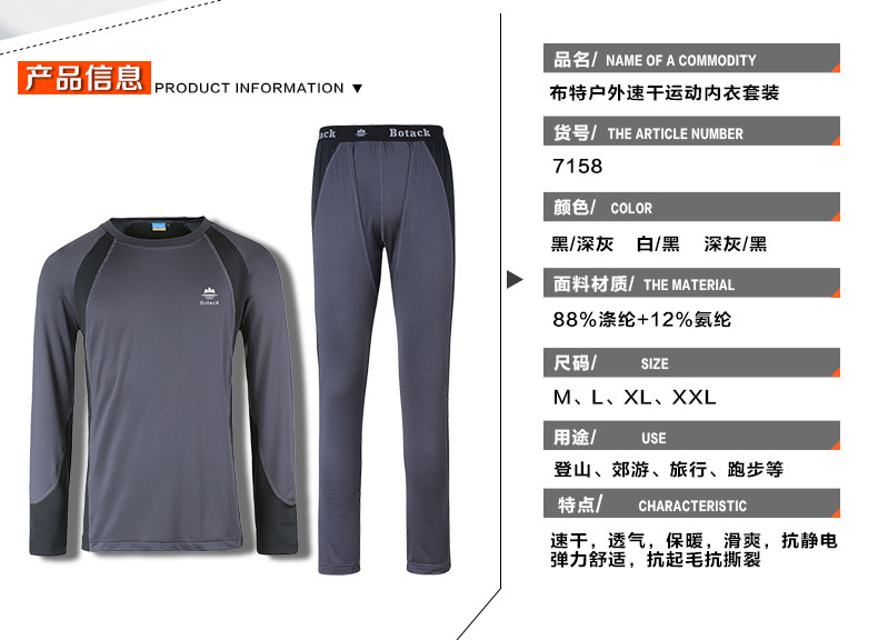 botack/布特户外功能内衣裤速干排汗骑行运动内衣保暖内衣套装男