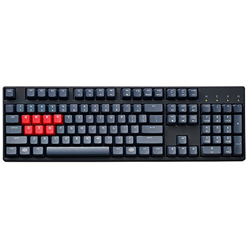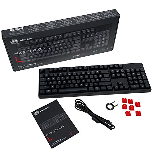 The MasterKeys L PBT keyboard is everything you love about the MasterKeys line, enhanced for a superior typing experience. It has the build, N-key rollover, and genuine German Cherry MX switches praised for their durability, accuracy, and tactile satisfaction. Extra thick 1.5mm PBT keycaps provide superior typing feel while the included red gaming keycaps makes the most important keys easier to locate. And with Cooler Master's exclusive on-the-fly adjustment system, you can switch layouts, from Windows to QWERTY, and from Dvorak to Linux, with simple key shortcuts that don't require crappy supplemental software.Feature