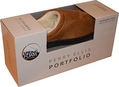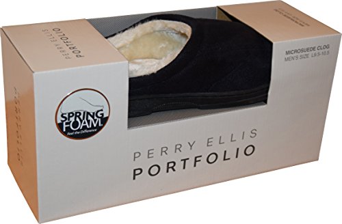 -. Binding : Apparel -. Brand : Perry Ellis -. Color : Black -. Department : mens -. Feature : Made of micro-suede material / Fully lined interior and spring foam cushioned footbed bottom / Slip-on indoor design / Surface can easily be clean with soft cloth / Rubber non-skid base -. ProductGroup : Shoes -. ProductTypeName : SHOES -. Title : Perry Ellis Men's Microsuede Clog Slippers