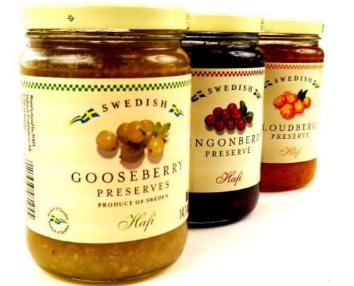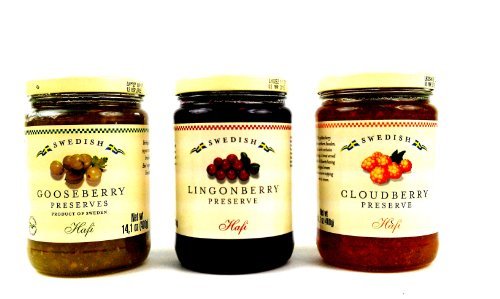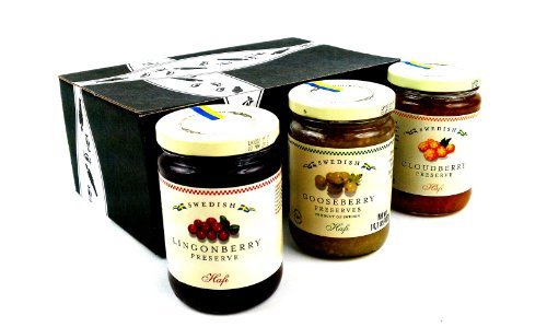 Hafi Preserves 3-Flavor Variety: One 14.1 oz Jar Each of Lingonberry, Cloudberry, and Gooseberry in a BlackTie Box (3 Items Total)