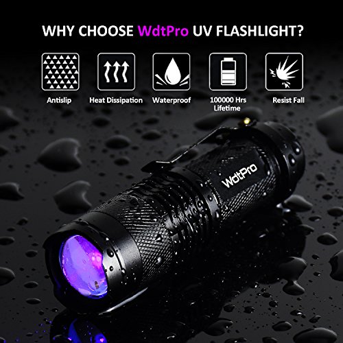 ✔ 1-YEAR MONEY-BACK GUARANTEE: We take great pride in the quality of our products and offer you a risk-free purchase. If, at any point during the 2nd YEAR of use, you are dissatisfied with WdtPro's ultraviolet flashlight, return it and get a full refund.