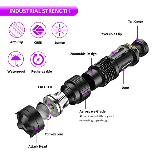 ✔ Rechargeable with 3 Modes → powered by 1 x 14500 battery(rechargeable) or 1 x AA battery. (Battery not included), energy and money saving. 3 modes: brighter, less brighter and SOS mode.