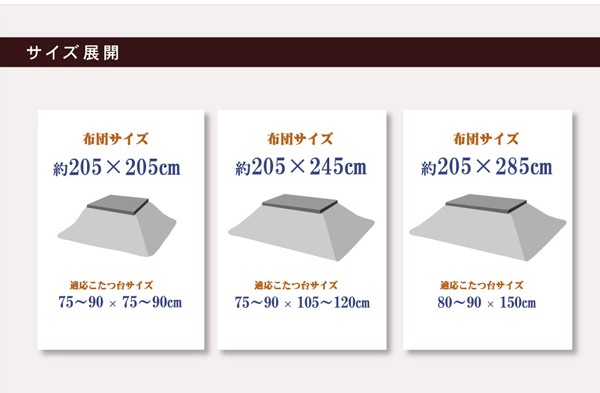 80~90×135~150cm幅のこたつ台に適応