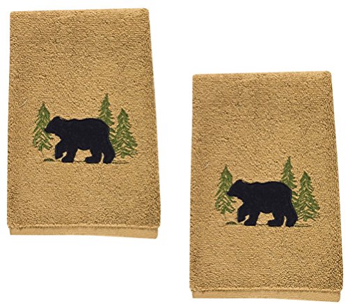 Studio : Park Designs Publisher : Park Designs Product Description Set of two terry Black Bear fingertip towels. Towels have an applique black bear silhouette and embroidered pine trees. These towels are perfect for drying your hands and their attractive design will complement you home or camper decor. Each towel measures 19 by 11 inches. Machine wash / tumble dry low. 0