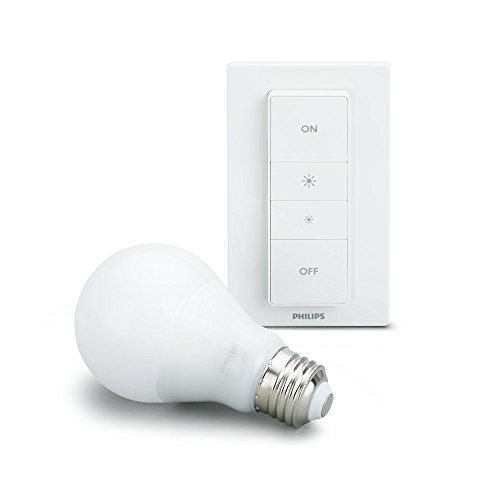 - Connect it with your Nest or Samsung SmartThings system. Each kit includes a Hue Dimmer Switch with wall plate and remote, a Hue White A19 Smart Bulb, a CR2450 battery, manual, and two-year warranty.