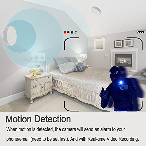 -. Title : Camakt WiFi Smoke Detector Camera HD 1080P Mini Nanny Cam Motion Detection Activated Video Recording Security Cameras for IOS Android PC Remote View
