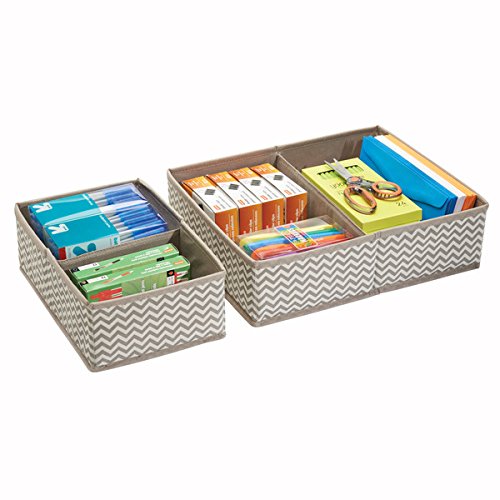 mDesign Office Drawer Storage Organizer Set for Pens, Pencils, Notepads - Set of 4, 9 Total Compartments, Taupe/Natural