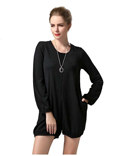 -. Title : Bestor Women`s Long Sleeve Loose Fit Black Shorts Rompers Jumpsuits with Pockets