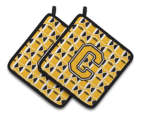 Caroline's Treasures Letter C Football black, Old Gold & White Pair of Pot Holders CJ1080-CPTHD, 7.5HX7.5W, Multicolor