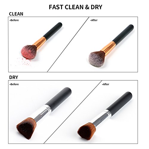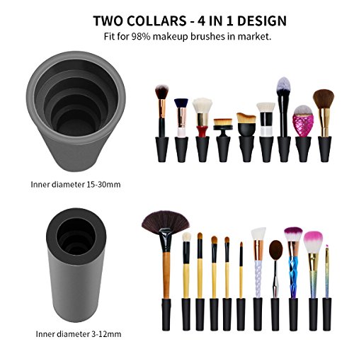 - Effective - Clean and dry all size makeup brushes thoroughly in just a few seconds. Two different sizes of rubber holders fits your makeup brushes perfectly, which improve your makeup experience and save your time and money.