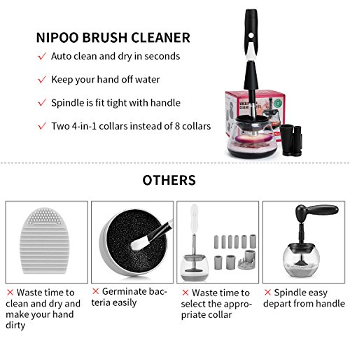 NIPOO Professional Makeup Brush Cleaner - Electric Spin Brush Cleaner, Cleans & Dries Brushes in Seconds + Two Upgraded Collars(4 in 1) for Almost Size Brushes