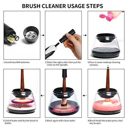 - Easy To Use - Three steps to clean : 1. Attach the brush to the spinner. 2. Pour some water and professional cleansing shampoo or soap into the bowl. 3. Dip the brush, spin to clean, raise the brush, spin to dry.