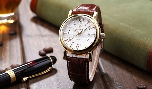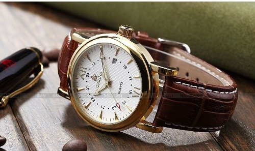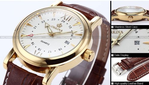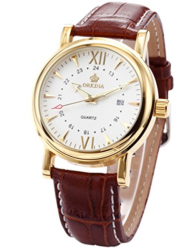 -. Title : (オルキナ) Orkinaメンズ ホワイト コーヒー レザー 日付 スポーツ クォーツ腕時計贈り物ORK046