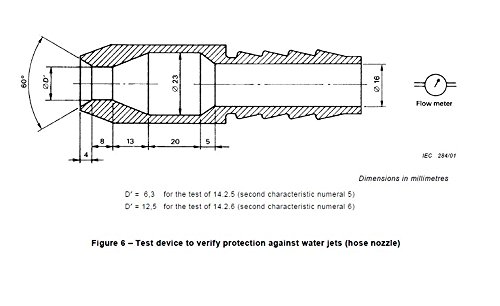 -. Brand : NEWTRY -. Feature : It is Used to test the waterproof performance of appliances or electrical appliances that have the function of preventing rain. / IPX5 and IPX6 call for a specimen to be sprayed with water from all practicable directions. / IPX5 specifies a nozzle with a 6.3mm diameter opening and a flow of 12.5l/min. / IPX6 specifies a nozzle with a 12.5mm diameter opening and a flow rate of 100L/min. / The IPX5-6 Jet Nozzle consists of a jet handle that is equipped with a pressure gauge and an easy-to-adjust flow valve. -. Label : NEWTRY -. Manufacturer : NEWTRY -. ProductGroup : Lawn & Patio -. ProductTypeName : OUTDOOR_LIVING -. Publisher : NEWTRY -. Studio : NEWTRY -. Title : NEWTRY IPX5\IPX6 test nozzle\sprinkler\water jet test device\\anti spraying test device\Hand held water proof test device