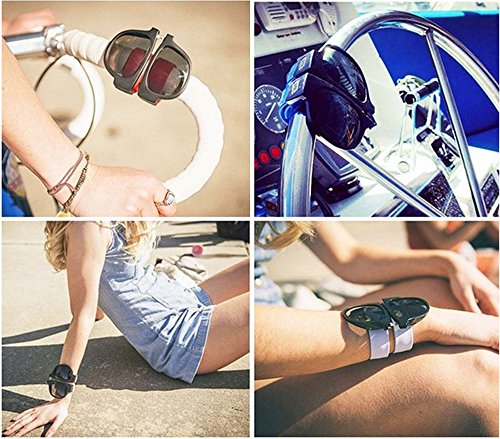 -. Feature : Unique design: new style of sunglasses with unique design that's both innovative and fun / Multifunction: With slap folding design this item can be both sunglasses and wristbands / UV 400 Protection: Protection against harmful UVA, Perfect for driving and sport, perfect accessory for the active lifestyle / Comfort and safety of nasal support: The integrated nose support ergonomic design, comfortable to wear, do not press the nose / The secret is in the ground-breaking frames which feature a special hinged nose-bridge and silicone-coated sP.R.Ing arms. the first sunglasses in the world that 'clip' to your head so they won't fall off, then fold and 'slap' around your wrist, ankle, bike handlebars or just about anything else. Clip so they grip, slap so they wrap!