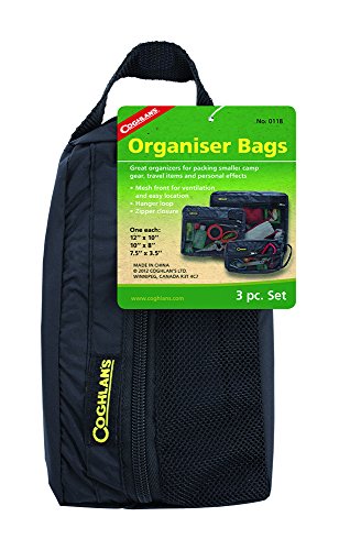 -. Feature : Set of 3 in different sizes / Nylon backing / Mesh front ventilates bags / Include zippers and hanger loops / Keeps your items organized