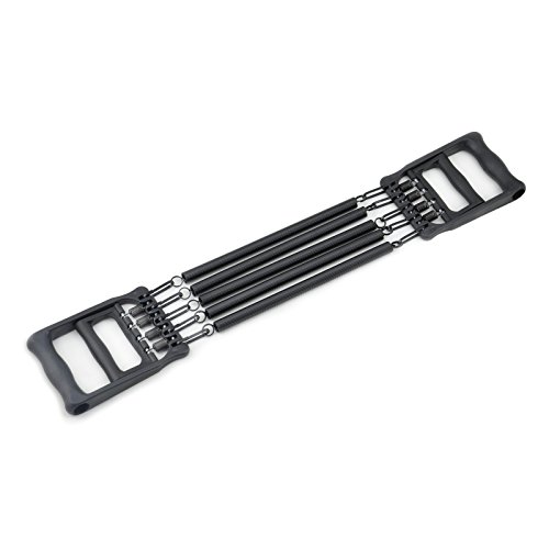 Length: 26.5". · Springs / Cables Length:14.5". · Handle Length: 6.25". · Resistance: 30 KG. · Material: Plastic handles and spring steel wire. · Color: Blank handles, Black springs. Ideal for use with Strand pulling Exercises. · Durable and lightweight. · Great for chest pulls and lateral raises. · Portable for training anywhere. · The five long springs can be assembled and disassembled according to personal favor. · Multi-function with different ways to exercise with. Multi-function handles also work as hand gripper.