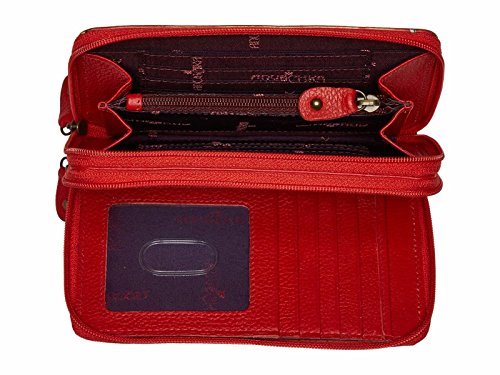 Studio : Western Fashion Publisher : Western Fashion Binding : Apparel Product Description Anuschka Island Escape, Leather Twin Top Organizer Short Wallet Dainty and arty, this wallet will fit all your essentials. ? Hand Painted. ? Genuine Leather. ? All round zip entry to main two compartments. ? Inside 18 CC holders, 1 bill pocket, 1 ID window, 5 multipurpose slip in pockets, 1 zippered pocket. ? 6" x 3.5" x 1.5". 0