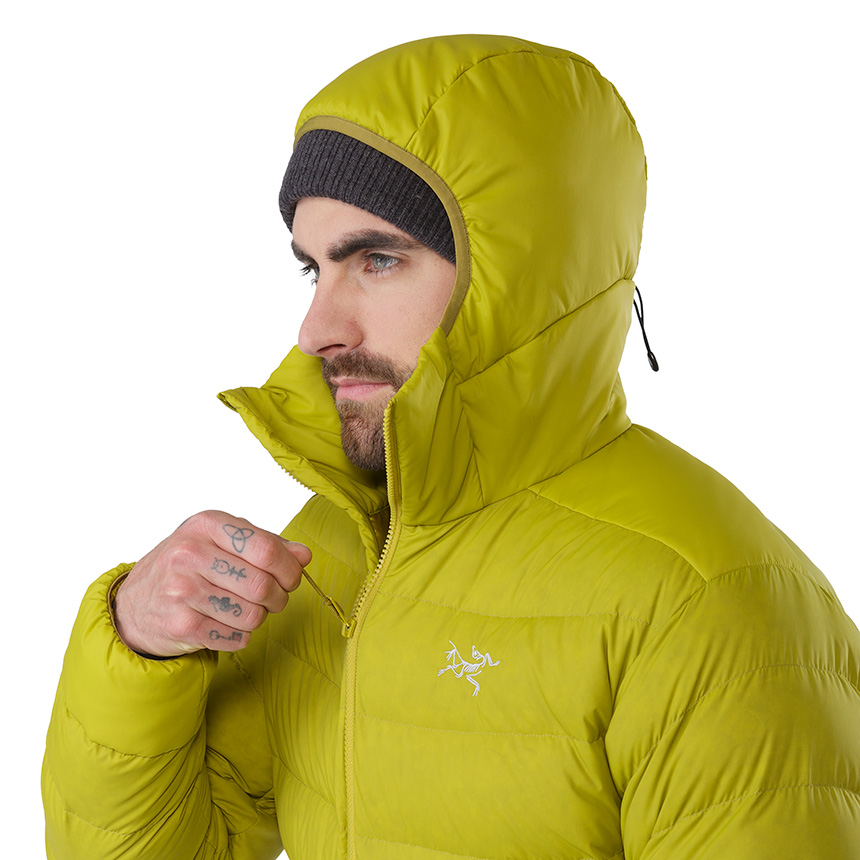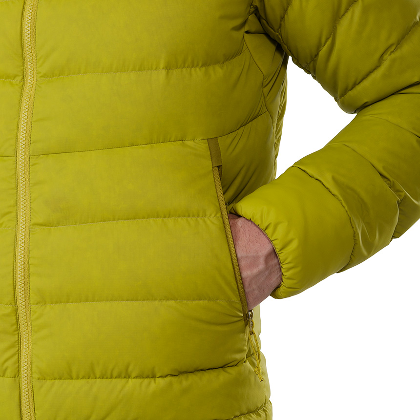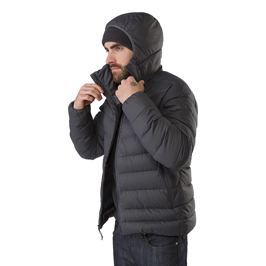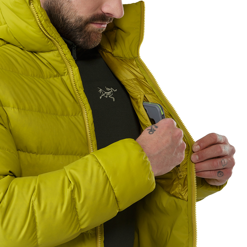 부드러운 촉감과 내구성이 뛰어난 소재에 750 필파워 구스 다운이 충전된 다운 후드 재킷. 일상 및 아웃도어에서 다양하게 활용할 수 있으며, 특히 춥고 건조한 기후에서 미드레이어 또는 단독으로 착용하기 좋다.
