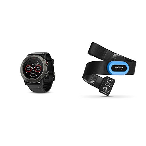 -. Binding : Product Bundle -. Brand : Garmin -. Color : Sapphire -. Feature : Ultimate multisport GPS watch with full-color TOPO U.S. mapping, routable cycling maps and other outdoor navigation features / Fit for adventure with rugged design that features stainless steel bezel, buttons and rear case / COMPACT AND COMFORTABLE - HRM-Tri is the smallest and lightest heart rate monitor from Garmin. Designed with rounded edges and no exposed seams, the strap remains comfortable during extended hours of training. / SWIM HEART RATE1 - Stores up to 20 hours of heart rate data during swims, then forwards it to a compatible device at the end of the session. It also sends real-time heart rate to the watch when the monitor is out of the water -. PackageQuantity : 1 -. ProductGroup : Wireless -. ProductTypeName : GPS_OR_NAVIGATION_SYSTEM -. Title : Garmin Fenix 5X Sapphire - Slate Gray with Black Band With HRM TRI