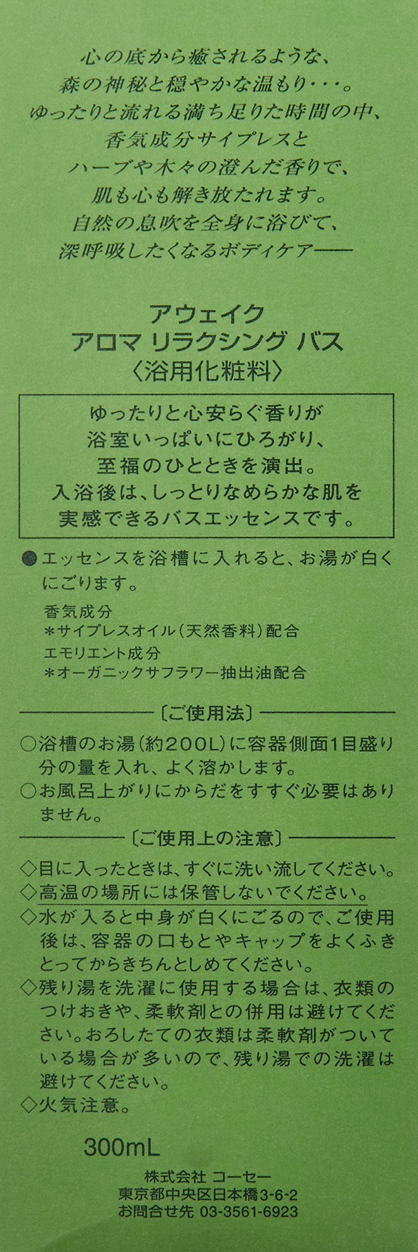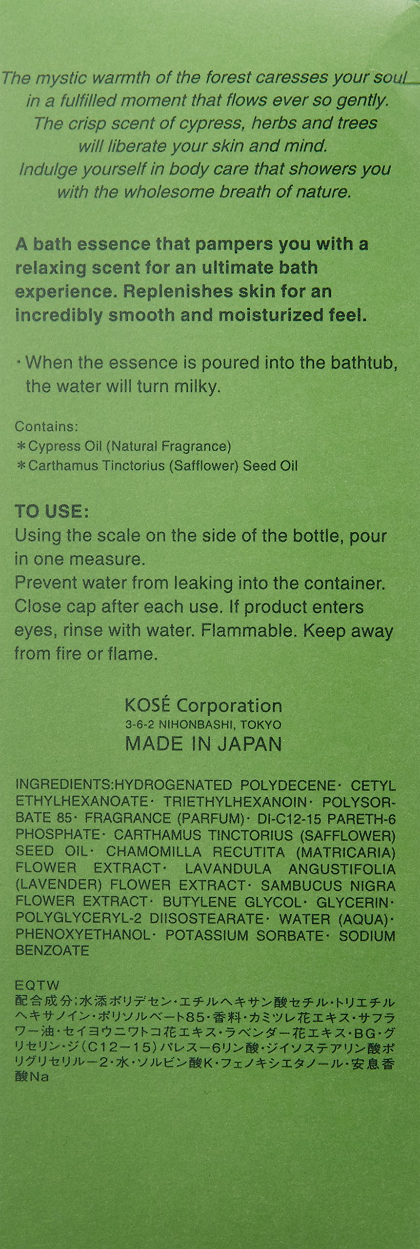 It is a bath essence of "forest bathing" that directs the time when the scent of the relaxing and relaxing forest spreads in the bathroom and when it is blissful.