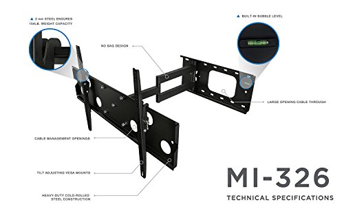 -. Title : Mount-It! MI-326L Swivel TV Wall Mount Full Motion, Articulating TV Mount Bracket for 35" - 70" inch LCD LED Plasma Flat Panel Screen, 175 Lbs Weight Capacity, All Hardware Included, Black