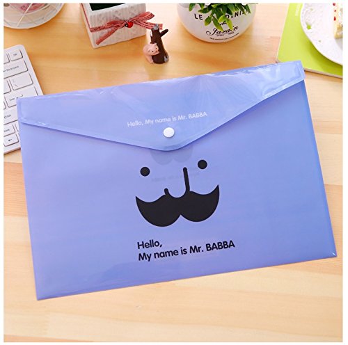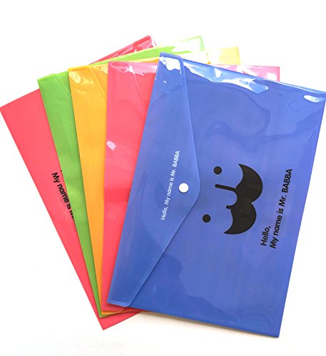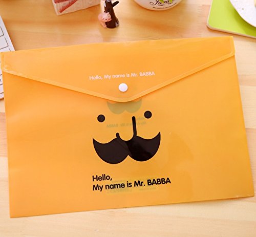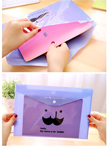 -. Title : Cute Mr BABBA Plastic File Folder,Filing Bag with Snap Button - Letter Size(Set of 5 Pcs)