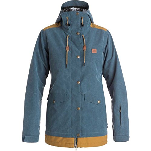 Studio : DC Juniors Publisher : DC Juniors Binding : Apparel Product Description Snow jacket for women. Features include: waterproofing: 15K DC WEATHER DEFENSE technology, fabric: polyester yarn dyed and laminated flannel [body], polyester enzyme washed dobby weave [panels], waxed polyester Oxford weave [elbow patches], fit: regular and insulation: [Fill weight: body 80g and sleeves 40g]. 0