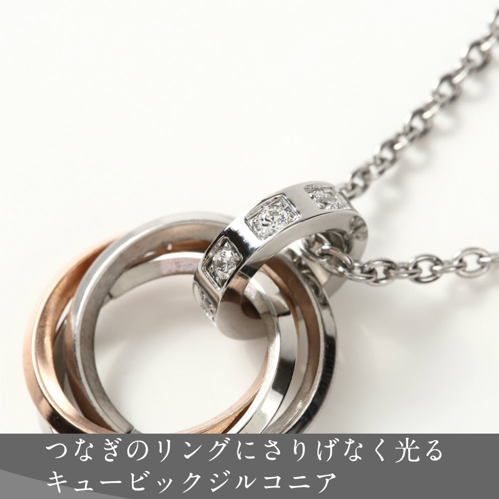 - Chain does not ruggedly In moderate thickness, the necklace of three consecutive rings with moderate presence is easy to match casual fashion as one point.