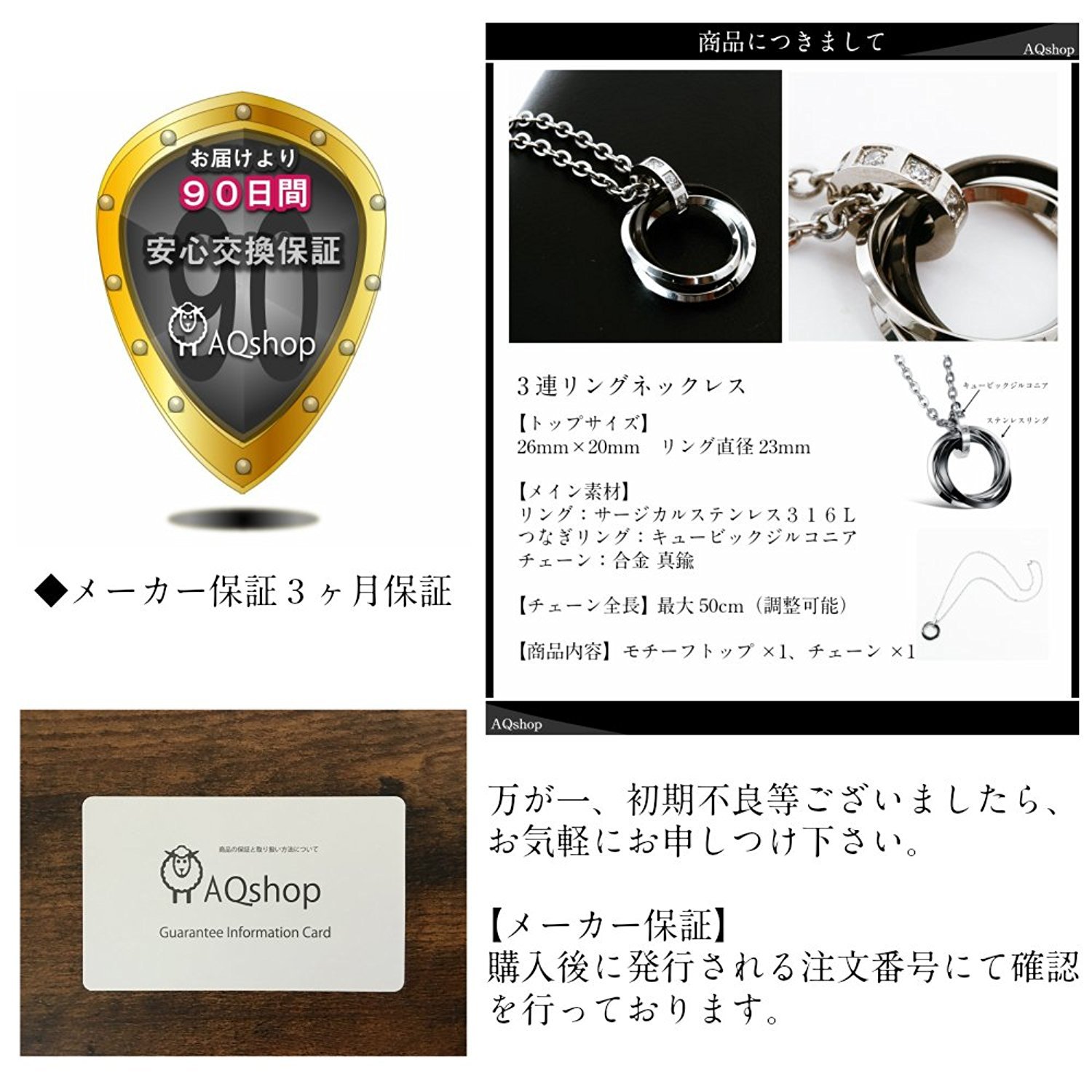 [Commodity content] 3 pendant ring pendant top × 1, chain × 1 AQshop manufacturer warranty card