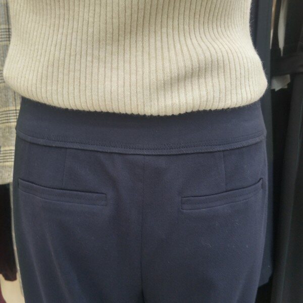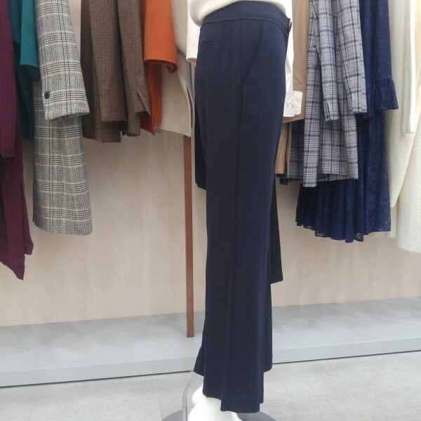 다리가 길어 보이는 부츠컷 슬랙스입니다. 허리스티치장식과 옆선배색이 고급스러우며 신축성이 있어서 활동적으로 입으실 수 있습니다.사진보다 진한 예쁜 다크네이비 컬러입니다.