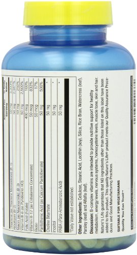 Studio : Nature's Life Publisher : Nature's Life Binding : Health and Beauty Product Description B-Complex vitamins are intended to provide nutritive support for healthy metabolism, energy levels, nervous system function, homocysteine levels, muscle tone, skin and hair. High in vitamin B are critical as coenzymes for energy production and are essential to maintain healthy nerves, skin, homocysteine levels and heart. 0