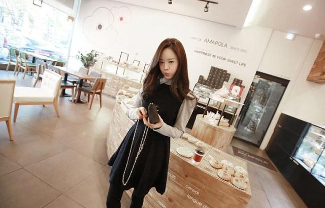 ワンピースはウエストから緩やかに広がるAライン。