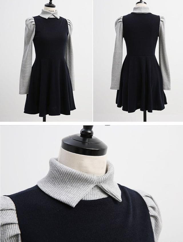 襟付きニットがドッキングされたワンピースです♪