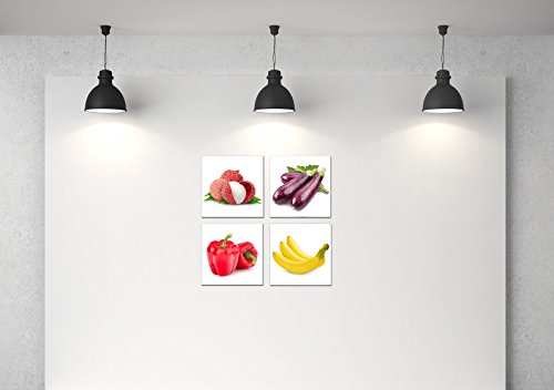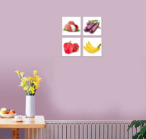 -. Title : The Decor Shop - Canvas P.R.Ints Fruit and Vegetables Pictures on Canvas Wall Art Framed Modern Decor Paintings Giclee Artwork for Kitchen Decoration Litchi Eggplant Pepper Banana 12x12inch