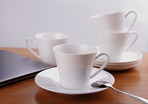 Studio : T4U Publisher : T4U Product Description Enjoy all your favorite coffee or Tea beverages in style with a cups and saucers set from T4UCrafted with high-quality porcelain.The unique raised saucer rim is perfect for holding your favorite treat. Microwave and dishwasher safe, you will love how our bright and cheerful cup and saucer set adds enjoyable, heartwarming value to your everyday life!Product Details: -Complete 4 Piece Cup and Saucer Set -Premium Porcelain -Microwave and Dishwasher Safe -Cup Capacity: 6 ounces -Satisfaction Guaranteed 0