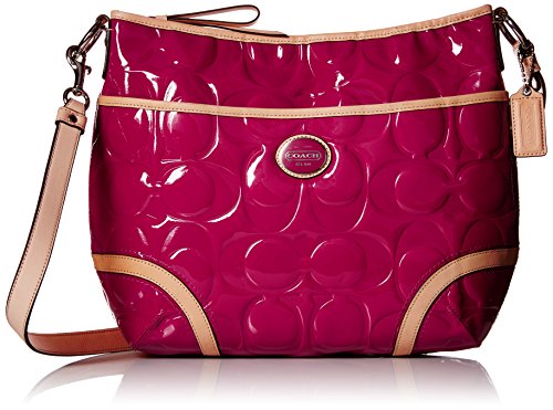 -. Feature : Embossed patent leather / Measures approximately 13 3/4" (L) x 11" (H) x 4" (W) / Inside zip pocket, Fabric lining / Adjustable strap converts to single long strap for shoulder or cross-body wear / Zippered top closure, open slip pocket