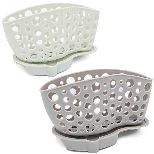 Sink Caddy Sponge Holder Soap Rack, 2 Pack NBtop Utensil Holder Faucet Caddy - Dark Grey&Light Grey