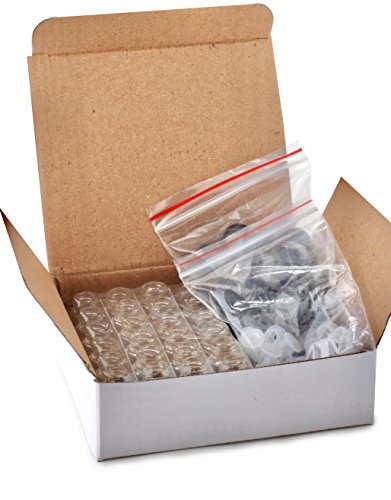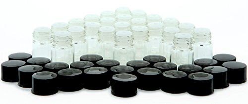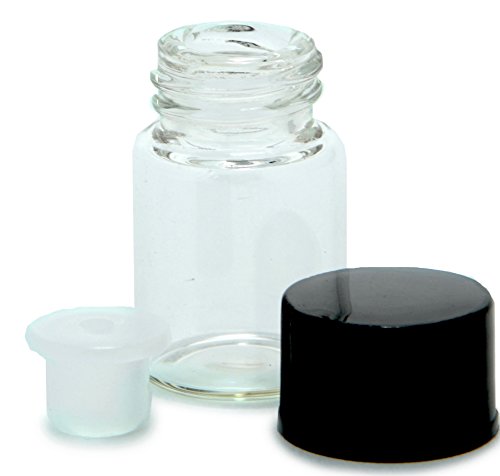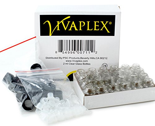 Vivaplex, 24, Clear, 2 ml (5/8 Dram) Glass Bottles, with Orifice Reducers and Black Caps