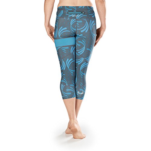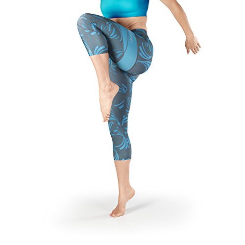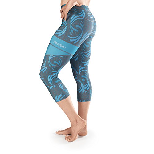 -. Binding : Apparel -. Brand : BioSkin -. Color : Corsica Waves -. Department : womens -. Feature : ZIPPERED POCKET: Over-sized back pocket fits iPhone 6 / COMFORTABLE COMPRESSION: 20% Lycra gives compression and secure fit / REFLECTIVE DETAIL: Zippers at ankles with reflective detail / STAYS IN PLACE: Compressive fabric hugs you just right so you won't need to keep readjusting your tights. Also comes with a removable adjustable drawing / DURABLE: Fabric stays looking brand new because it won't pill or collect lint. -. ProductGroup : Apparel -. ProductTypeName : PANTS -. Title : Perfect Fit Running Compression CaP.R.Is, 3/4 Leggings with Phone Pocket- Blue