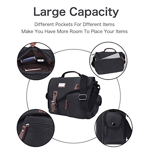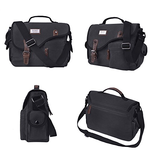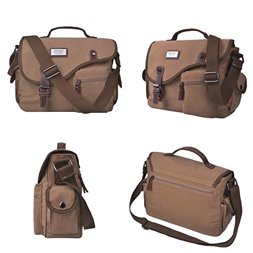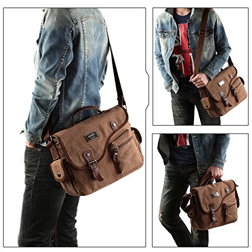 -. Feature : Multifunctional Usages: Vintage and fashionable,can be used as business briefcase handbag shoulder pack daypack sling bag or casual style cross-body school bag outdoor travel satchel. / Large Capacity: This canvas shoulder bag contains 1*main compartment, 1*front zipper and 1*rear zip pocket for easy access of frequently handled items, 2*side pockets, 2*inner slip pockets and 1*inner zip pocket for to store cellphones, chargers, earbuds, pen and glasses. / Adjustable Strap: The shoulder strap can be easily adjusted or removed for different carrying and body shape , the soft leather handle makes it comfortable to carry. / Material: Vintage Canvas Briefcase is constructed of high quality canvas, magnetic metal buckle make it easy to open and close, SBS zippers to ensure a long lasting durability and allows you zip up the bag smoothly. / Size: 32cm(L)x24cm(H)x10cm(W). Perfect size easy to carry iPad, kindle, cellphone, wallet, books and other small stuffs. Usage: commute, weekend, field, travel, school or everyday use.
